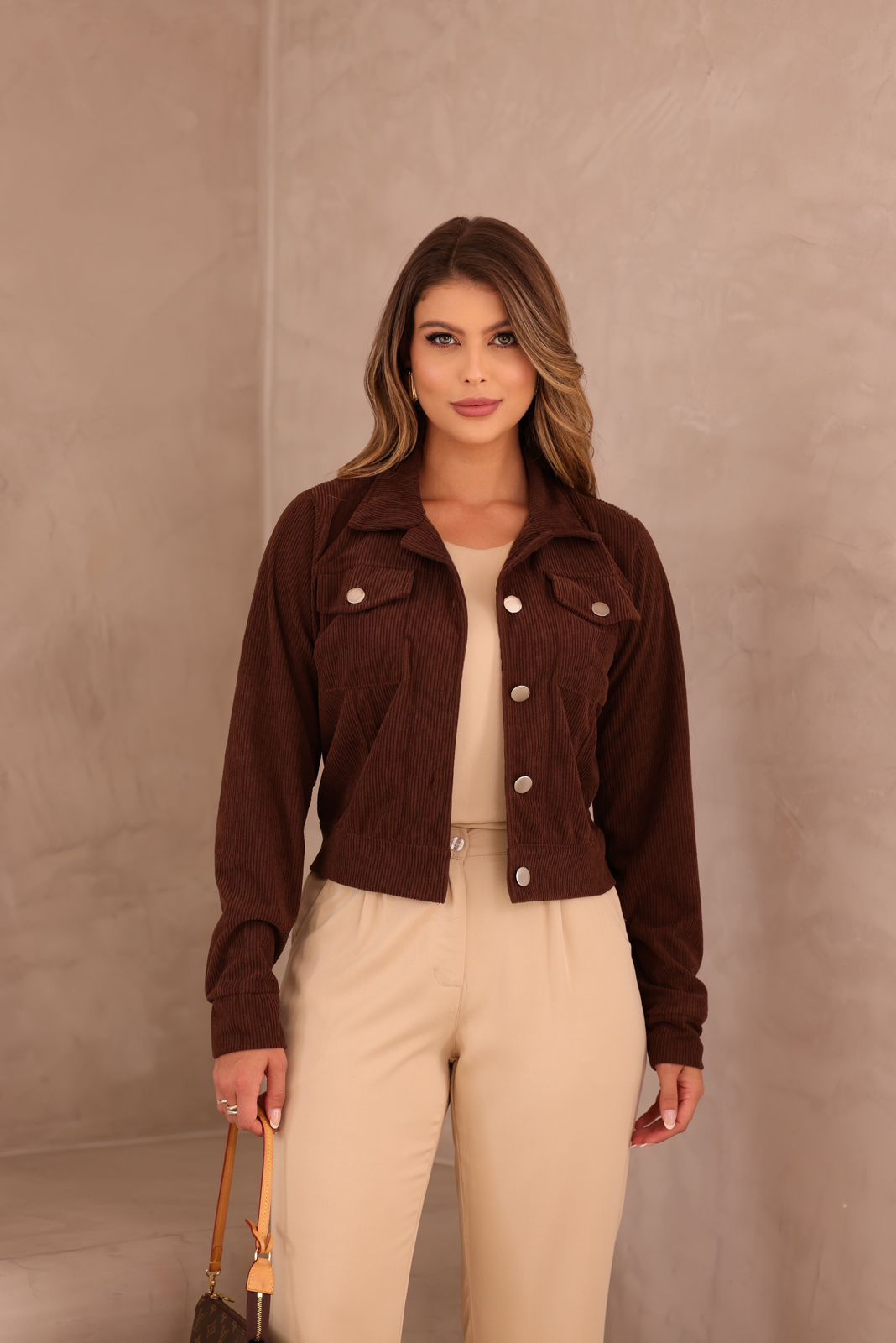 Confeccionada em tecido cotelê de alta qualidade, a peça oferece conforto, textura diferenciada e excelente acabamento, perfeita para compor looks estilosos nos dias mais frescos.